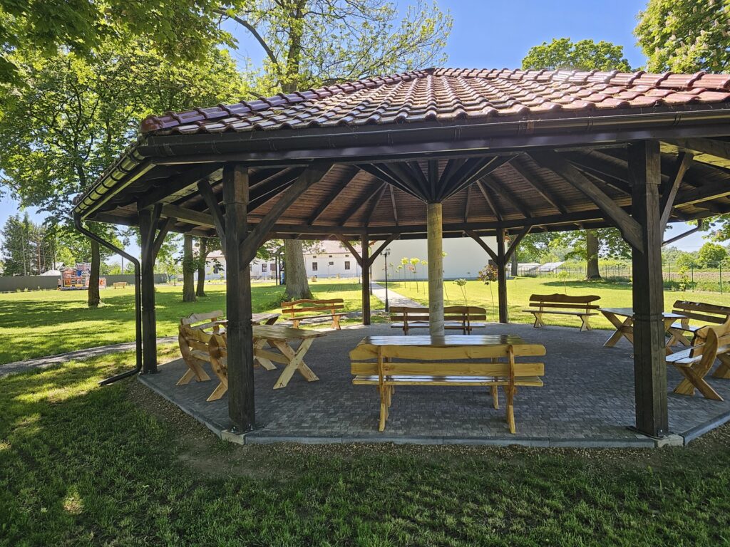 Nasza urokliwa altana w ogrodzie to idealne miejsce na relaks i odpoczynek. Otoczona bujną zielenią, zapewnia zaciszne miejsce do spędzenia czasu na świeżym powietrzu, ciesząc się pięknem natury i spokojem.